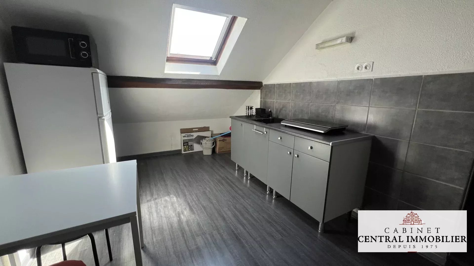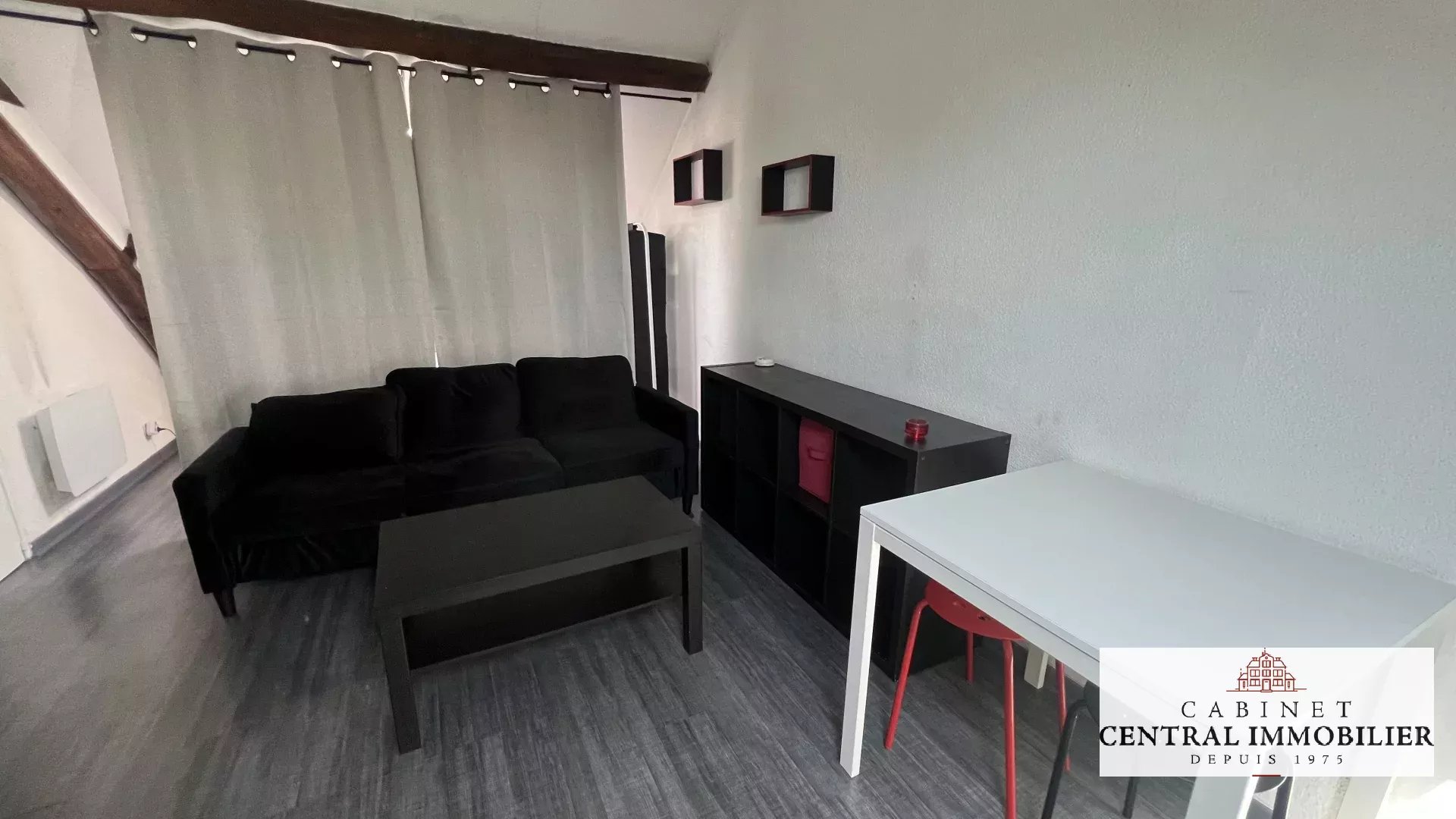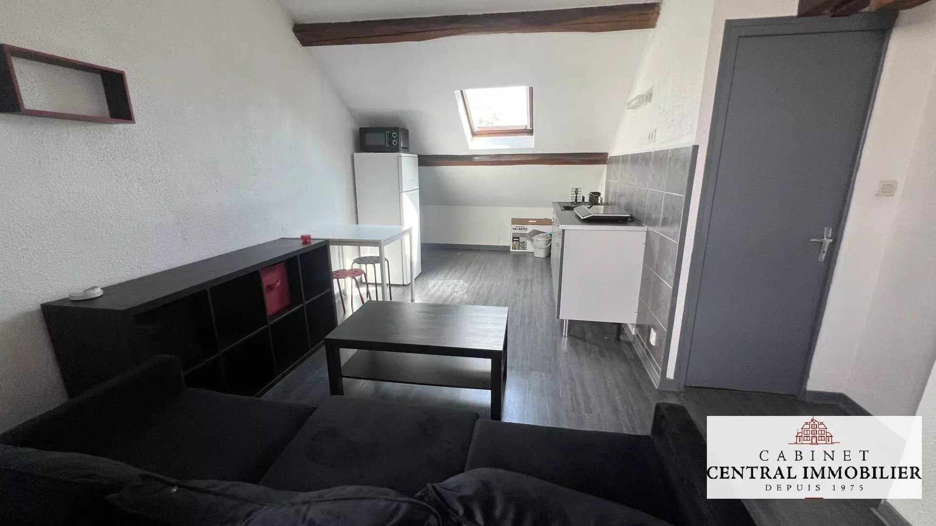 Studio meublé situé au 2ème étage comprenant une pièce de vie avec cuisine aménagée, équipée et parquetée ainsi qu'une salle d'eau parquetée avec sèche serviette et WC