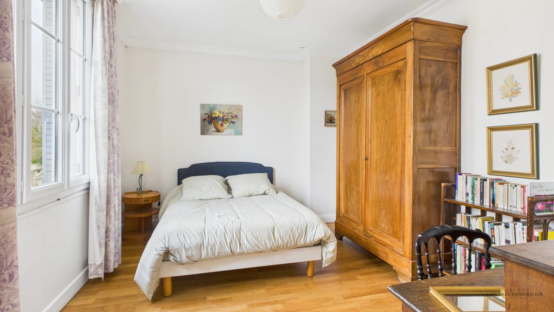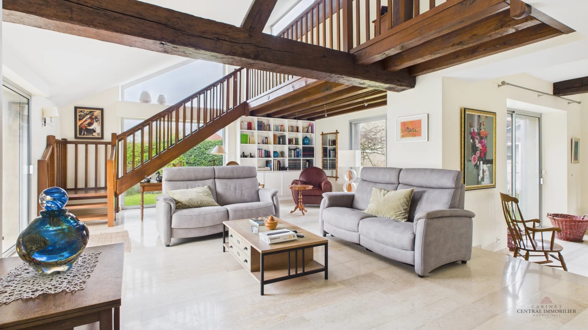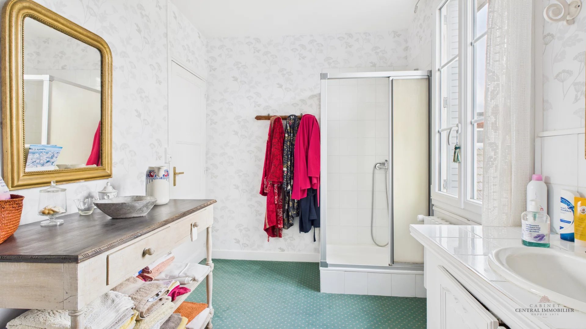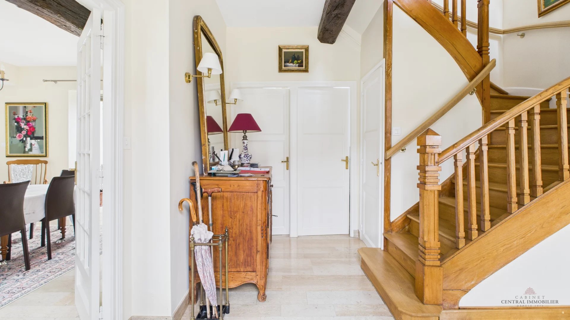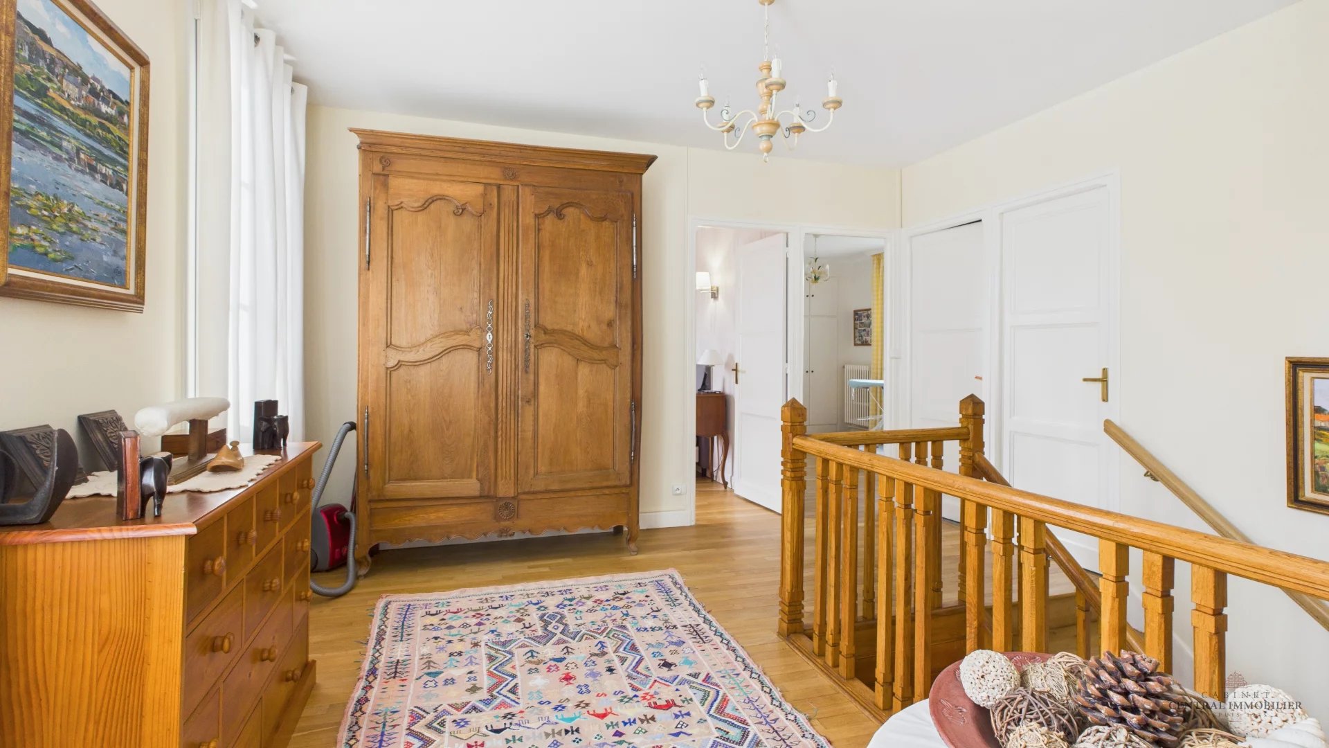 Maison comprenant : entrée de 12m² sol pierres de bourgogne avec placard et penderie, cuisine dinatoire de 20.80m² carrelée aménagée équipée accès véranda à usage d'arrière cuisine et buanderie, beau séjour salon de 75m² sol pierres de bourgogne avec baies vitrées et cheminée foyer ouvert, bureau de 4.70m² sol pierres de bourgogne, wc, salle d'eau (douche à l'italienne) sol pierres de bourgogne. À l'étage : palier parqueté, 3 chambres de 12.85m²/16m² et 16.20m² parquetées dont une avec 3 placards, chambre parentale de 13.50m² avec salle d'eau de 7m², wc. Mezzanine et une pièce grenier avec fenêtre. Chauffage central par PAC eau/eau. Double vitrage. Volets roulants électriques sur baies vitrées. Terrasse sol pierres avec préau et remise. Piscine enterrée et chauffée de 4x8. Chaufferie. Cave. Grange de 400m² environ avec 2 garages. Bureau indépendant. Portail motorisé. Agréable terrain clos de 1877m².