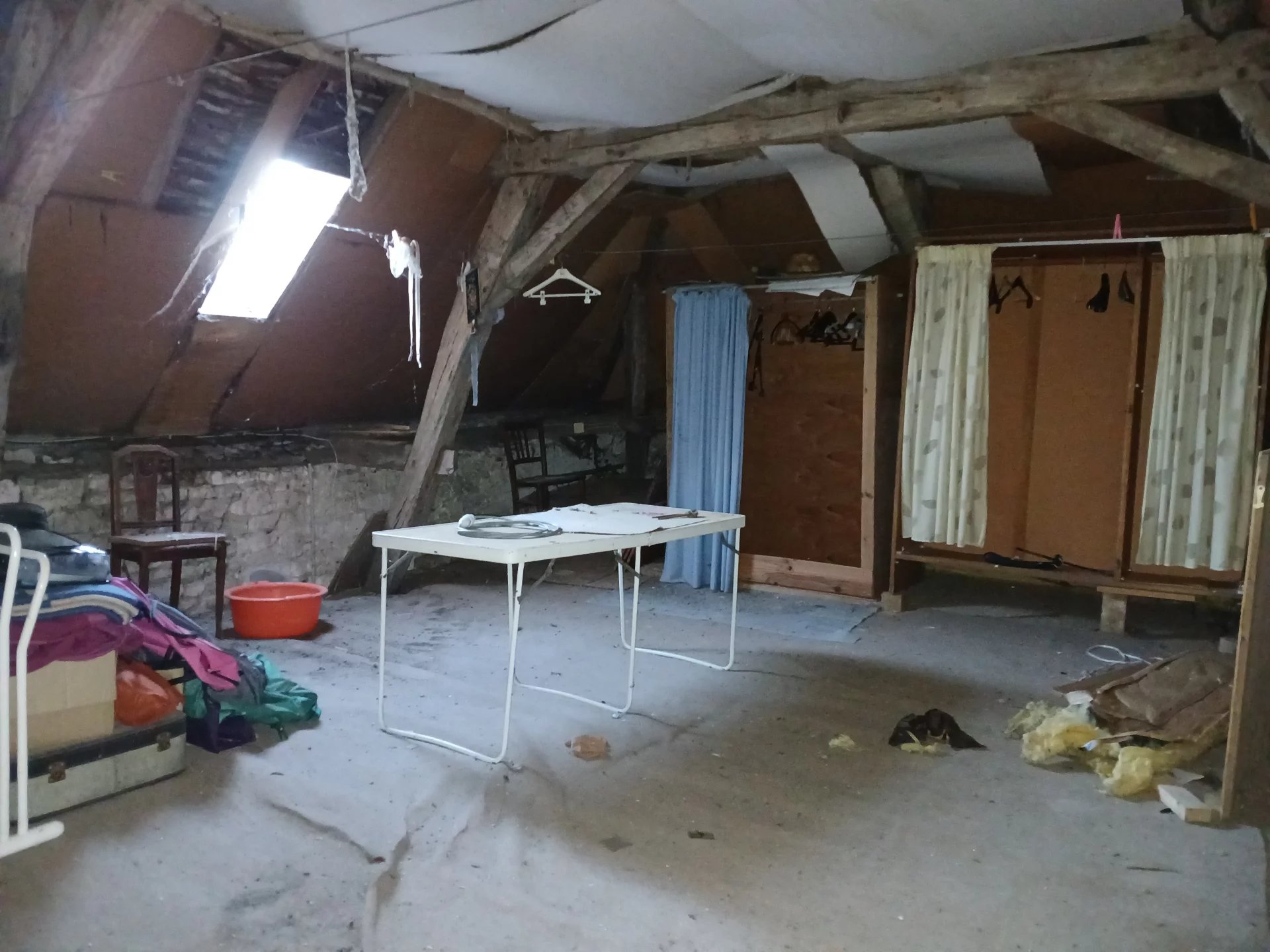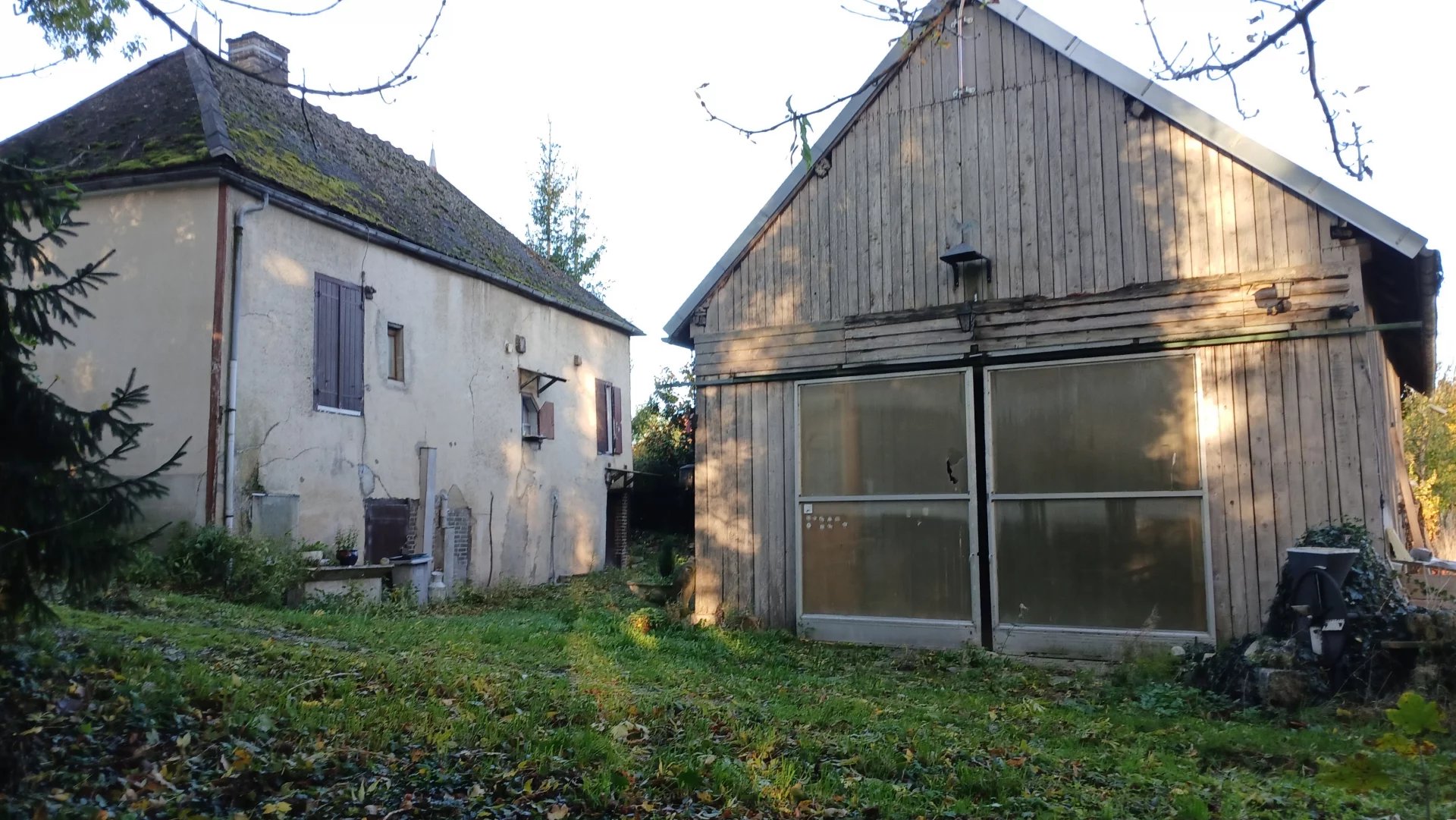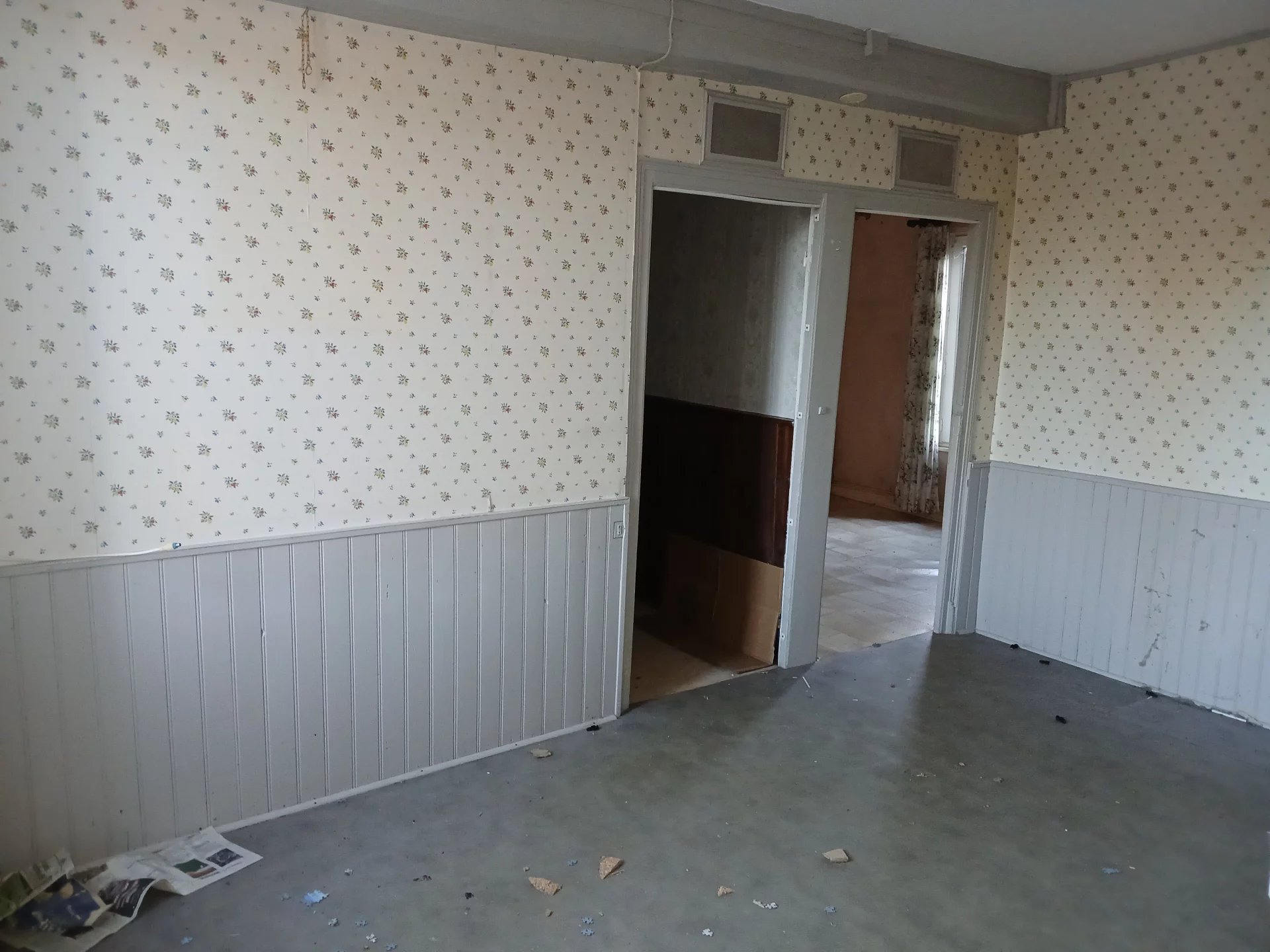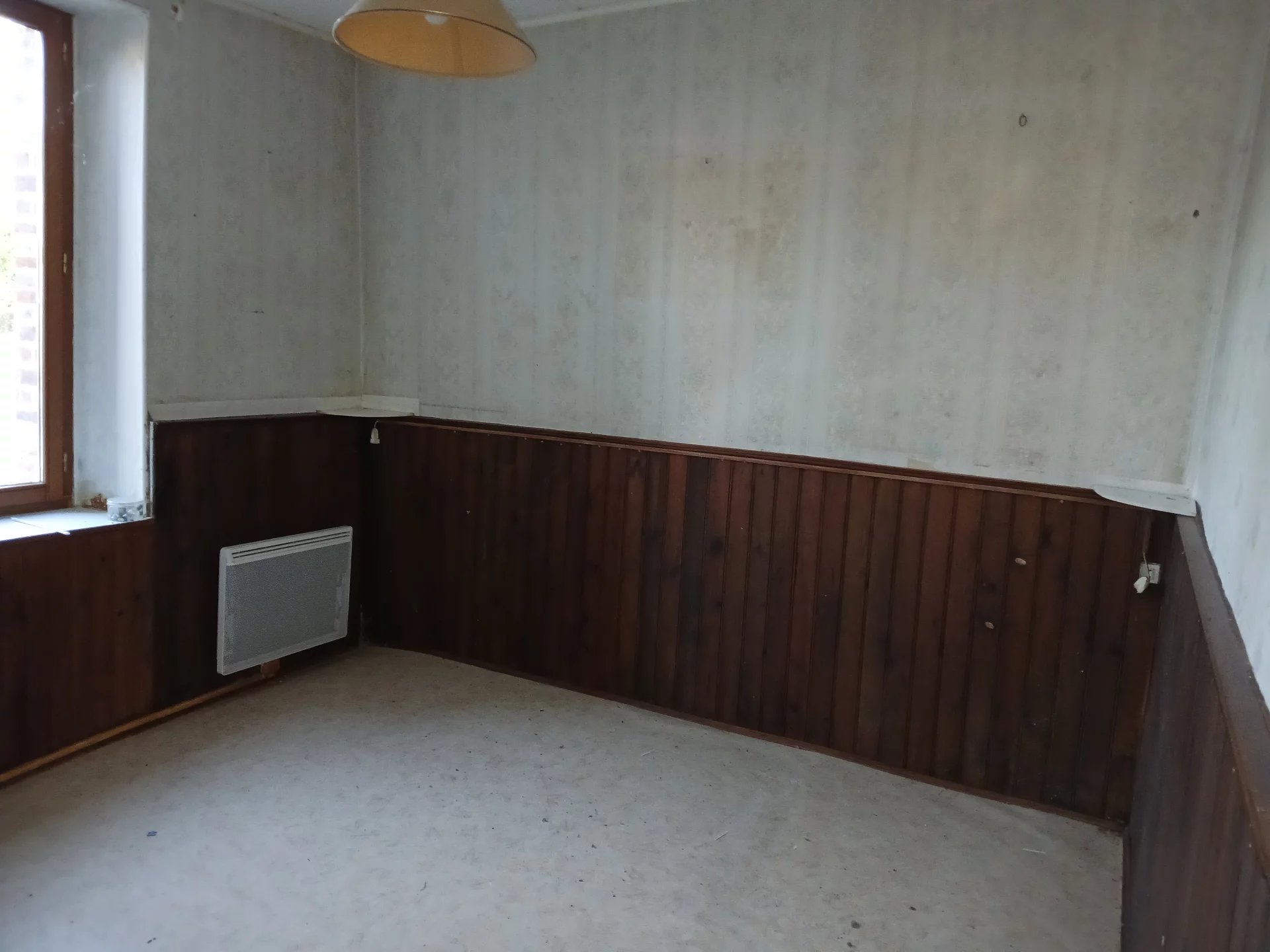 Maison à rénover comprenant : entrée carrelée, cuisine, séjour sol lino avec conduit de cheminée, salon sol lino, salle d'eau, wc, 2 chambres sol lino. Grenier aménageable sur l'ensemble. Double vitrage. Volets bois. Chauffage électrique. Cave. Remise. Belle grange avec point d'eau.