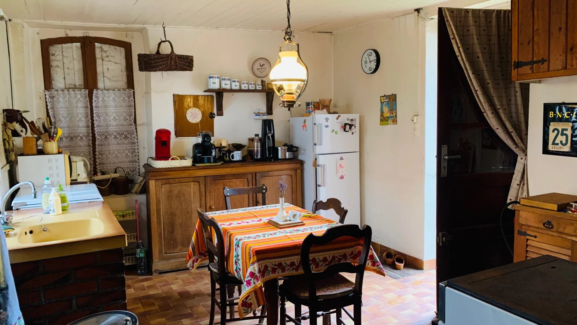 Maison située à 10 minutes de Romilly sur Seine comprenant : entrée sur cuisine de 14.04m² carrelée avec cuisinière à bois, séjour salon de 30m² carrelé avec cheminée foyer ouvert et poutres apparentes, salle d'eau carrelée avec wc, chambre de 16.94m² dalle béton. À l'étage : chambre palière sol moquette. 2 greniers aménageables. Chauffage électrique et bois. Double vitrage ancien et simple vitrage. Grange. Appenti. L'ensemble sur un terrain clos de 540m².