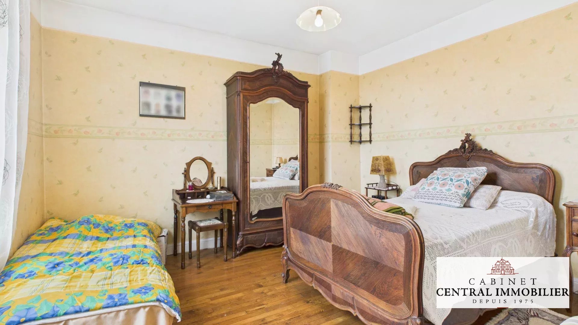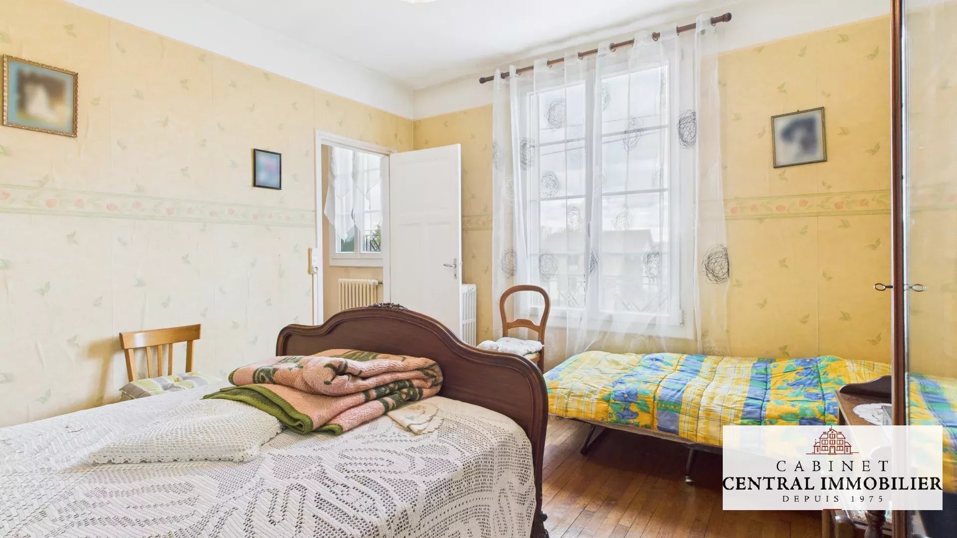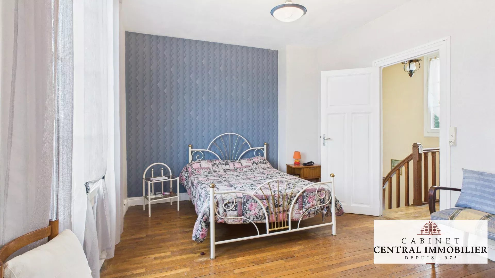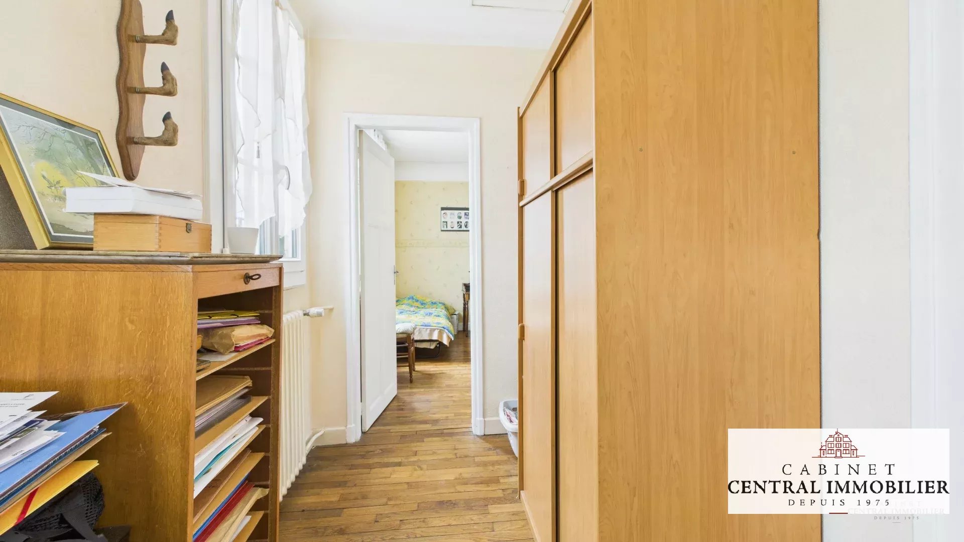 Au premier étage : un palier de 5.28m² desservant une chambre en parquet de 14.96m² ainsi qu'une chambre en parquet de 15.48m² avec une salle d'eau de 4.46m².