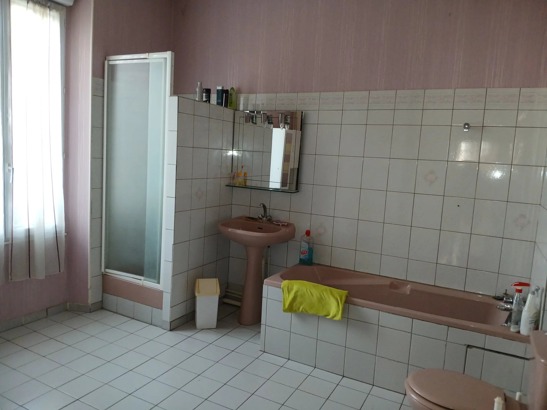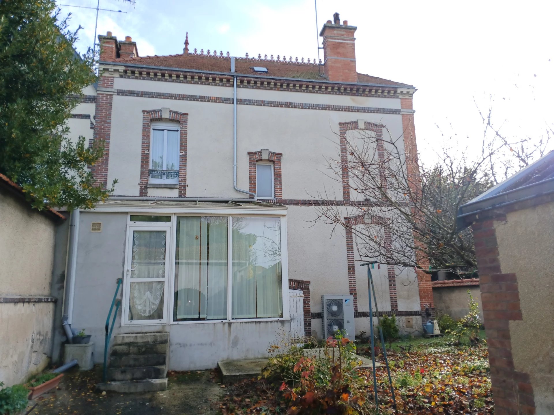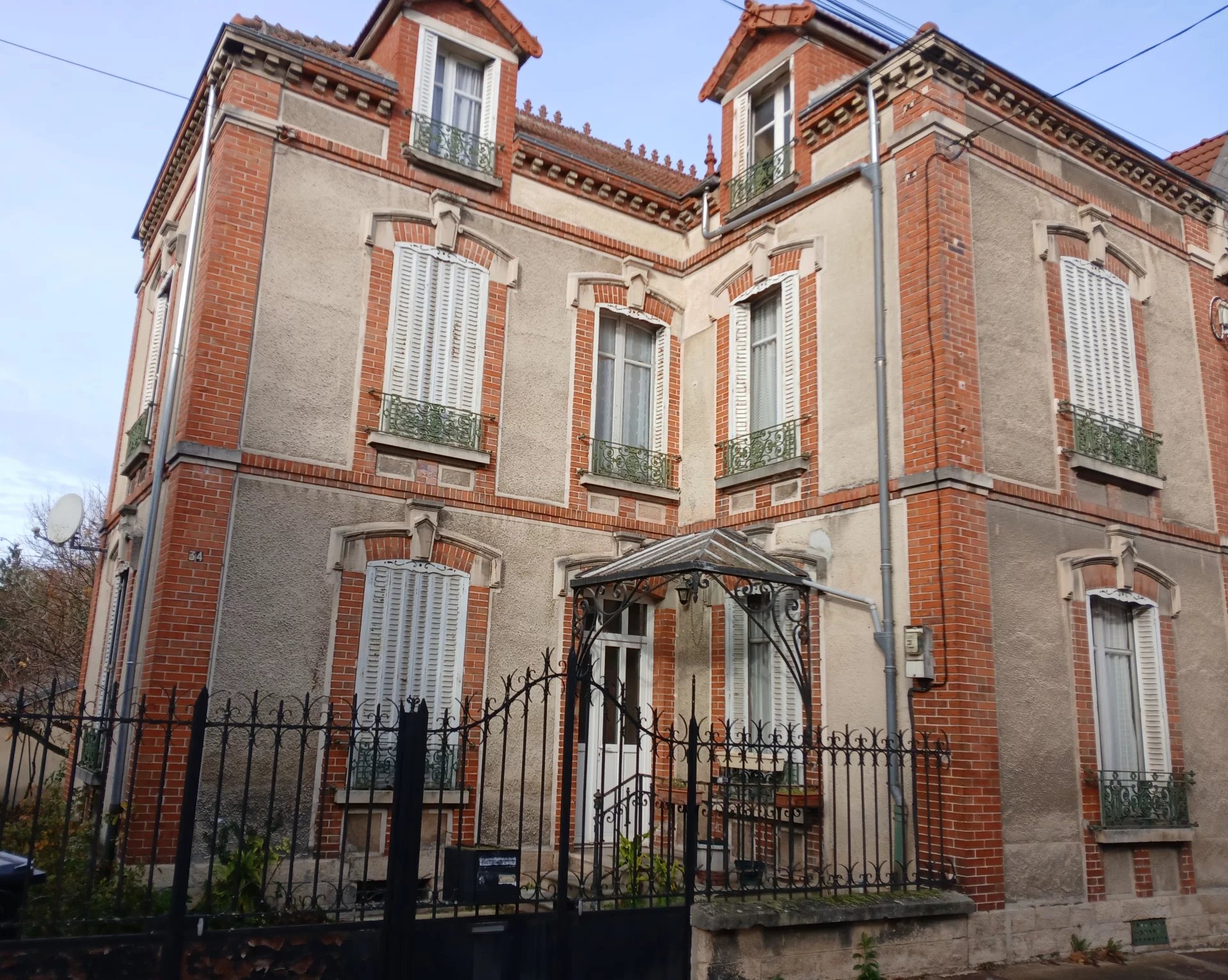 Maison comprenant : entrée sol mosaïque, cuisine de 11m² carrelée aménagée équipée avec placard, véranda de 11.60m² carrelée accès jardin, salon de 14.30m² parqueté, séjour de 17.40m² parqueté avec cheminée marbre, salle d'eau wc carrelée. À l'étage : palier parqueté, 2 chambres de 14.50m² et 17.30m² parquetées avec placards, salle de bains carrelée (baignoire/douche avec wc et placard). Au 2ème niveau : palier parqueté, 2 chambres de 13.40m² et 14.50m² au sol. Cave sous l'ensemble compartimenté en cellier, chaufferie et wc. Chauffage central par pompe à chaleur. 2 remises. Terrain clos.