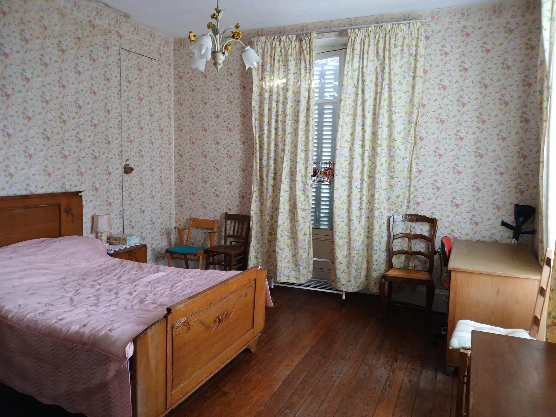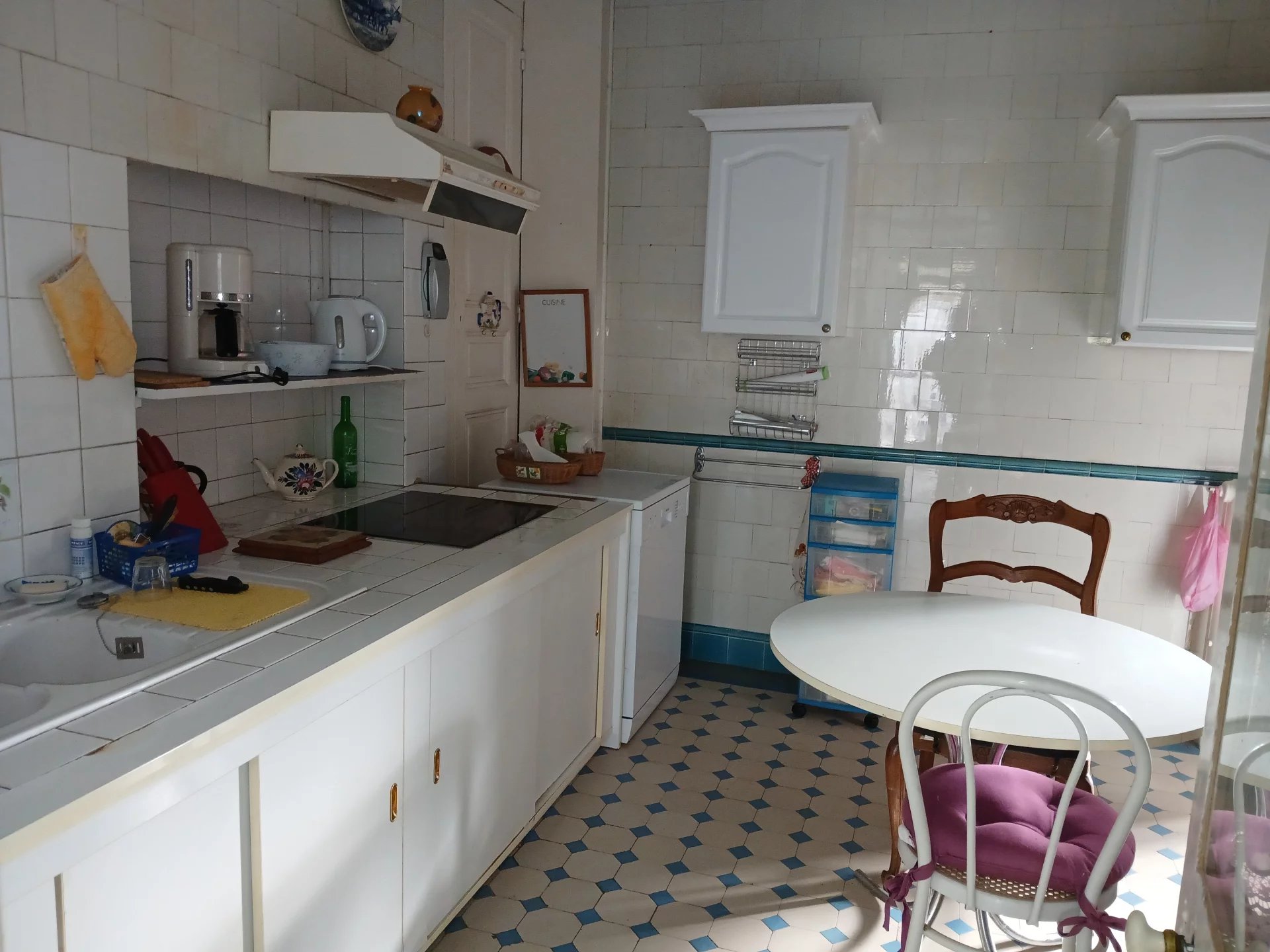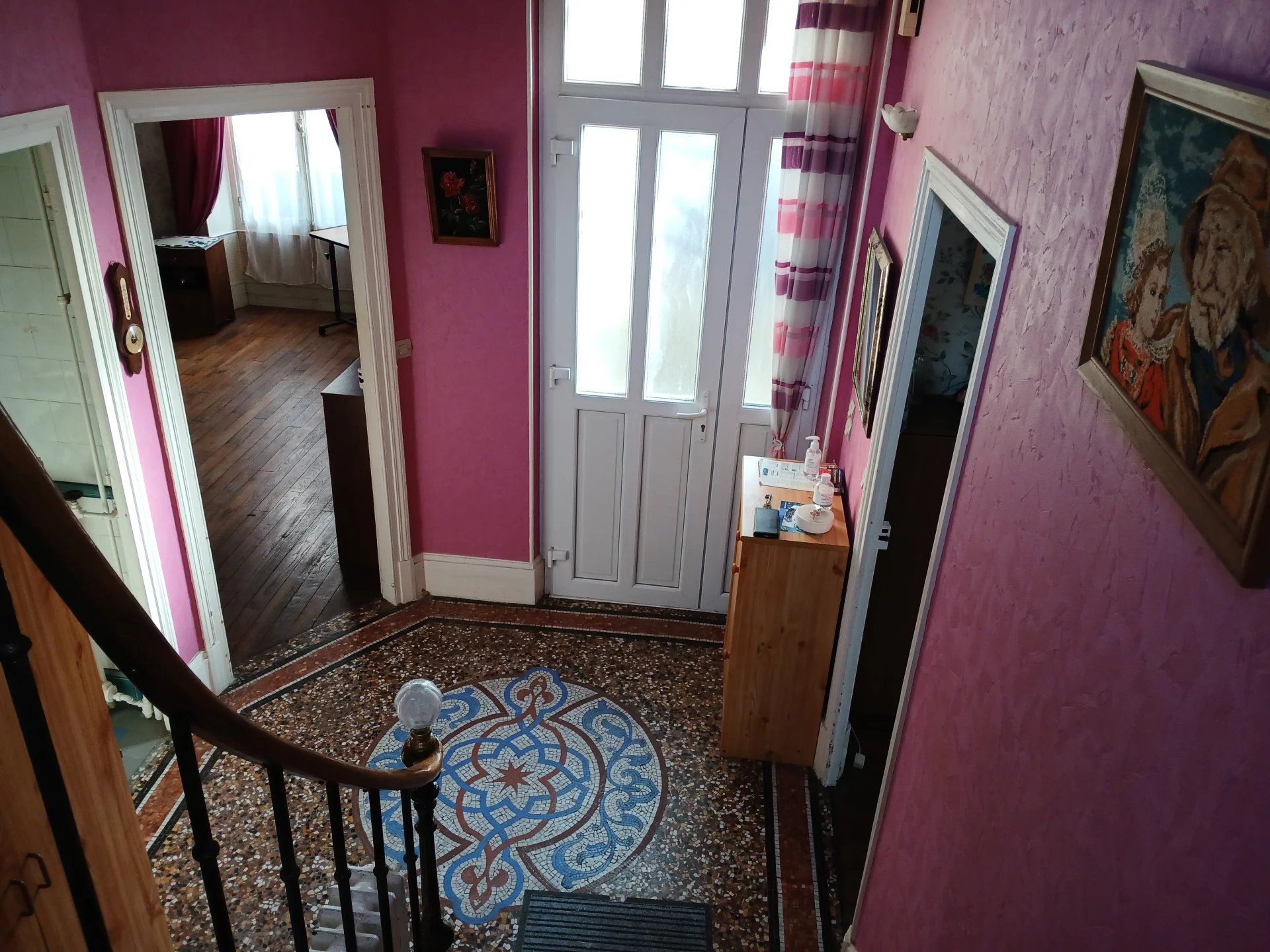 Maison comprenant : entrée sol mosaïque, cuisine de 11m² carrelée aménagée équipée avec placard, véranda de 11.60m² carrelée accès jardin, salon de 14.30m² parqueté, séjour de 17.40m² parqueté avec cheminée marbre, salle d'eau wc carrelée. À l'étage : palier parqueté, 2 chambres de 14.50m² et 17.30m² parquetées avec placards, salle de bains carrelée (baignoire/douche avec wc et placard). Au 2ème niveau : palier parqueté, 2 chambres de 13.40m² et 14.50m² au sol. Cave sous l'ensemble compartimenté en cellier, chaufferie et wc. Chauffage central par pompe à chaleur. 2 remises. Terrain clos.